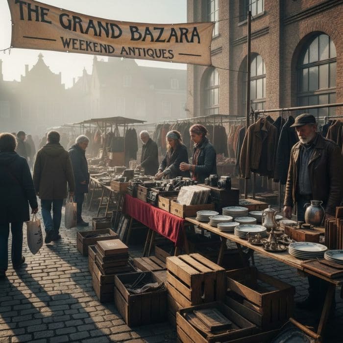 The market already felt alive when I arrived. Vendors were setting out crates, folding tables, and racks of old objects with quiet confidence, like they had done this for years.