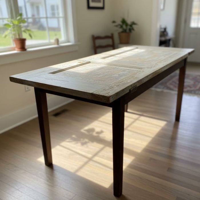 Once clean, I laid the door flat on the floor and examined it closely. The thickness measured just under 1¾ inches, which was strong enough to support weight without additional reinforcement.