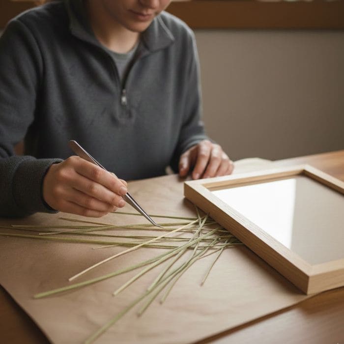 That moment taught me that pressing sea grass is not about making it completely flat like paper. It is about calming it just enough so it can rest inside a frame while still holding movement and life.