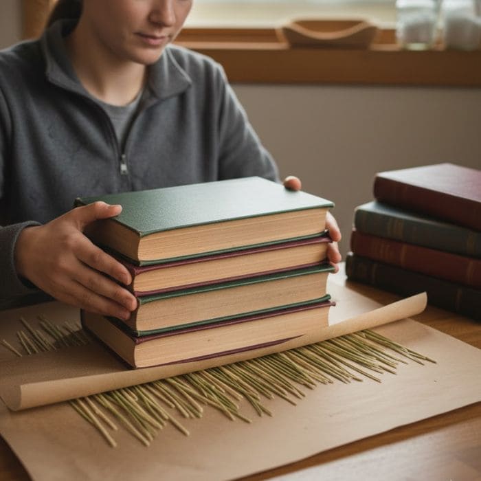 On top of that, I stacked several heavy hardcover books, making sure the weight felt steady and centered. I resisted the urge to add too much weight, knowing that sea grass is more delicate than it looks.