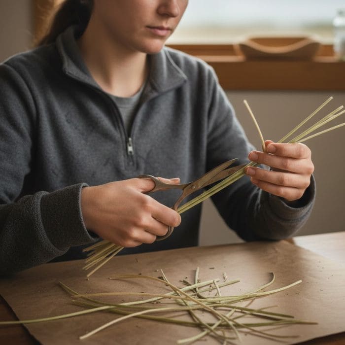 I studied the sea grass closely, laying it out strand by strand. Some pieces were straight and calm, others curved softly, almost like they still remembered the movement of water.