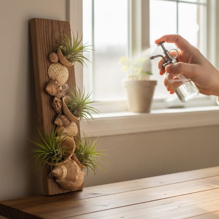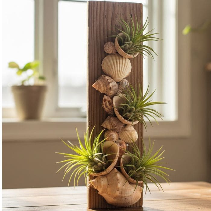 The connection felt natural. Seashells shaped by the ocean, air plants that live without roots in soil, both lightweight, both resilient, both existing outside the usual rules of indoor decor.