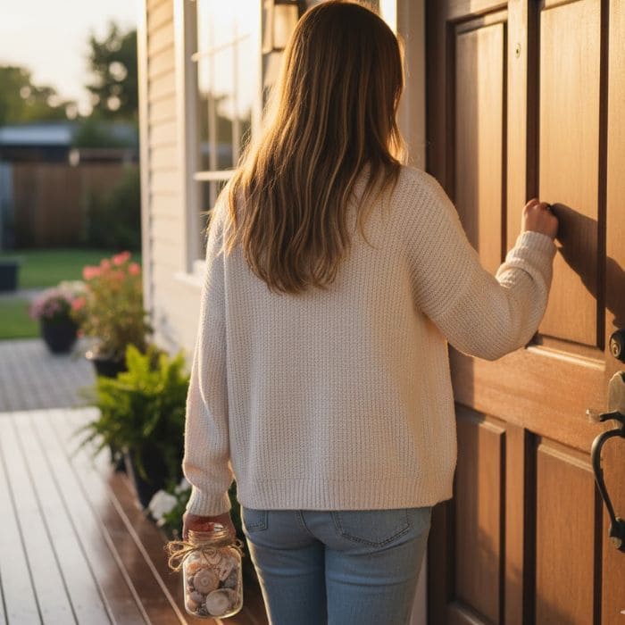 I thanked her genuinely, because the kindness behind the gesture mattered far more than the object itself, and after a short conversation about the area and the beach nearby, she left me standing in the doorway holding the jar and feeling oddly lucky.