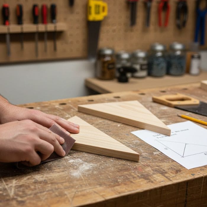 • 2 side supports (triangle pieces): cut from a board at least 10 in × 8 in (you will cut into two identical right triangles)