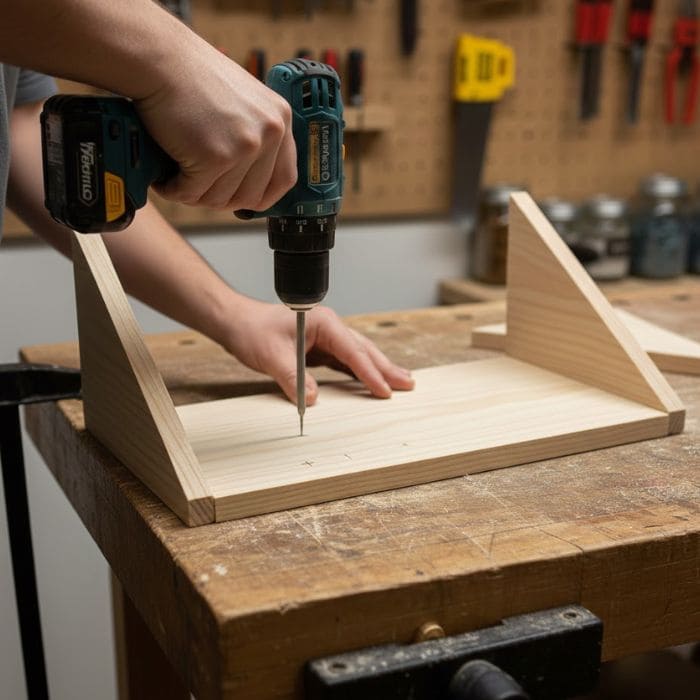 This part is important, because if you skip pilot holes, the wood can split, and a split base is a kitchen stand that will eventually wobble no matter how careful you are.