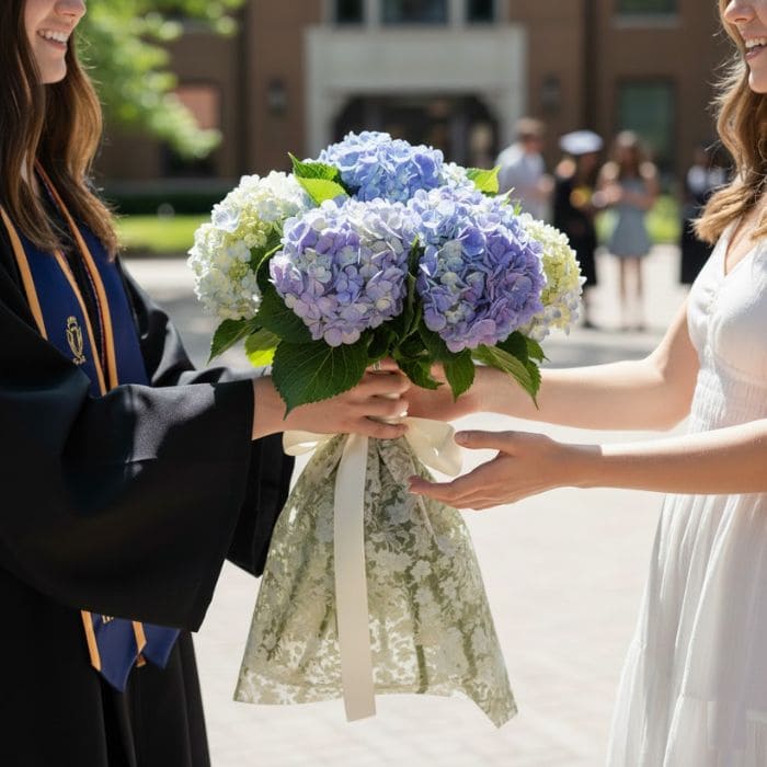 After the ceremony, it felt like the entire campus was made of flowers. People were carrying bouquets almost as big as their torsos, ribbons everywhere, hands full, arms full, and every time someone hugged, petals brushed against sleeves.