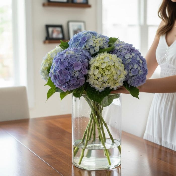 The bouquet was heavy in the way fresh flowers can be, damp stems wrapped in paper, and the hydrangeas were the first thing I noticed because they were huge and full, the kind of blooms that look like they’ve been assembled from dozens of tiny paper petals.