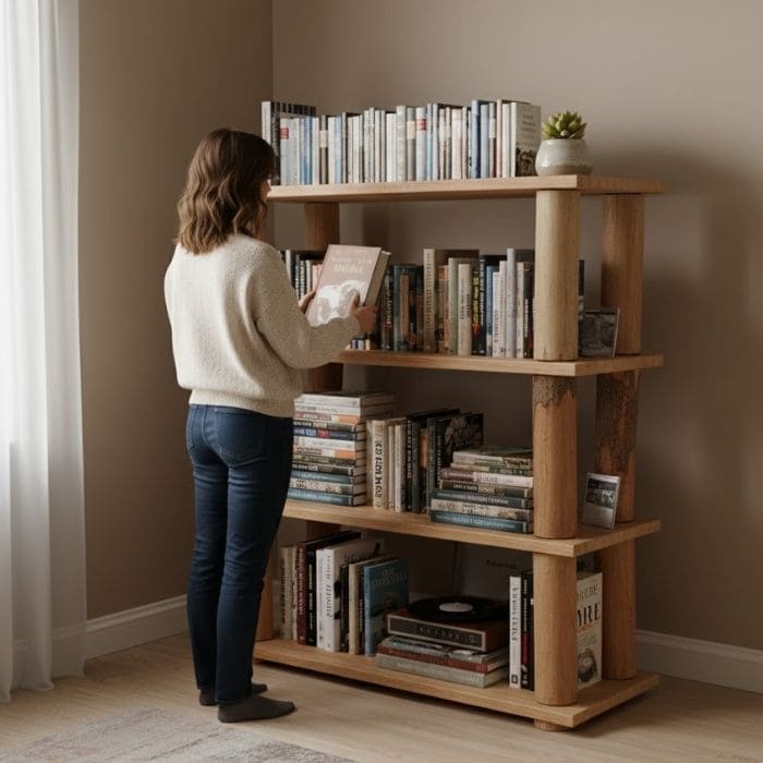 They came from an old fruit tree branch we trimmed last winter. That was the moment the idea finally settled. Why not make a bookshelf myself, right here at home, using what I already had?