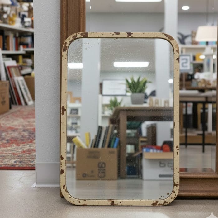 Rectangular, with gently rounded corners, not sharp or dramatic, just calm. It measured about 28 inches tall and 18 inches wide, and the frame was slim, roughly an inch and a quarter, painted in a tired beige that had softened with age.