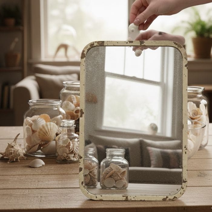 The next morning, I lifted the mirror carefully and leaned it against the wall again. The change was quiet but clear. The shells caught the light differently throughout the day, casting soft shadows and adding depth without noise.