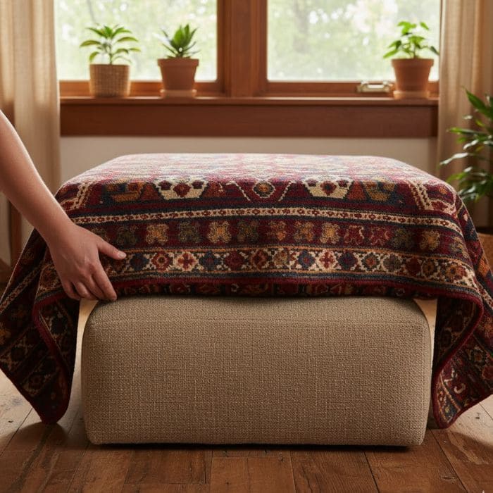 3. Covering an Ottoman With a Rug to Create a New Piece
